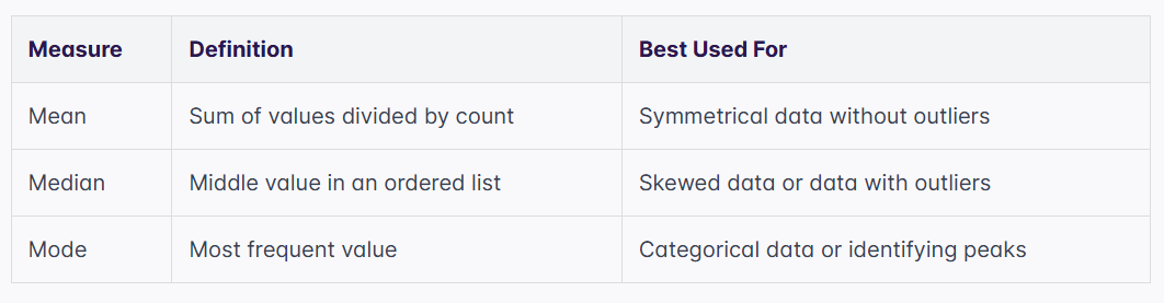 Median: The values are already ordered. The middle (3rd) value is 120k) pulled the mean far above what most employees earn, while the median remains representative.