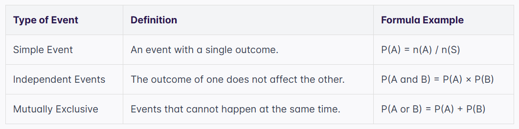 Mutually exclusive events are two or more events that cannot happen at the same time. For example, when tossing a single coin, the outcomes "Heads" and "Tails" are mutually exclusive because the coin cannot land on both simultaneously.